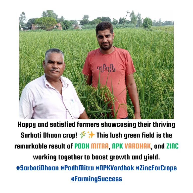 Main Hardayal Singh, Sarbati Dhaan ka kisaan hoon, aur Dhara Green ke Podh Mitra, NPK Vardhak aur Zinc ne meri kheti ko sach mein nayi zindagi de di hai. Jab maine Podh Mitra ka istemal kiya, toh germination 95-98% tak pohonch gaya, jo mere liye ek bade safalta ka patra tha. NPK Vardhak aur Zinc ne mere faslon ko itna majboot banaya ki unhone high yields diye, aur sabse khaas baat—meri fasal bilkul rog-mukt rahi! Dhara Green ne mujhe ek aise tareeke se madad ki, jisse meri kheti bhi safal hui aur main apne paryavaran ko bhi surakshit rakh paaya. Agar aap bhi apne kheton mein asli badlav chahte hain, toh Dhara Green ka jadoo zaroor apnaayein aur apni faslon ko naye aasman tak le jayein.